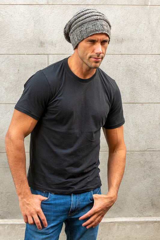 Mens Slouch Beanie wool hand knit in soft grey NS-02GY
